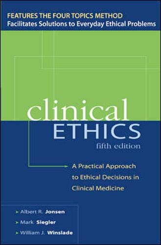 Clinical ethics : a practical approach to ethical decisions in clinical medicine / Albert R. Jonsen, Mark Siegler, William J. Winslade.